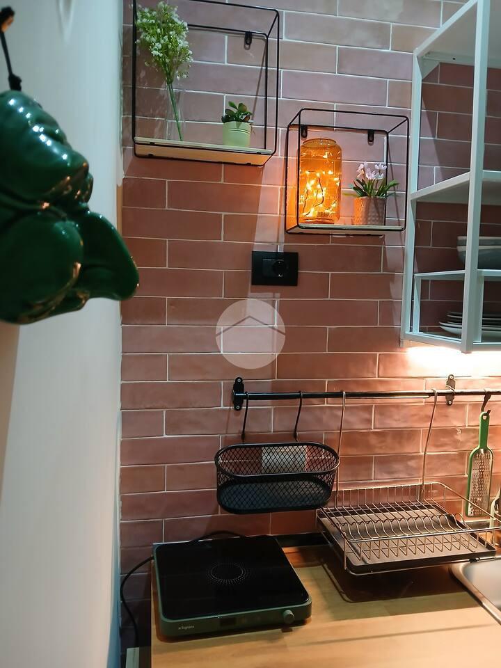 Gli spazi interni sono distribuiti in modo funzionale e accogliente, comprendendo una cucina attrezzata, una confortevole camera da letto e un servizio moderno e ben rifinito.